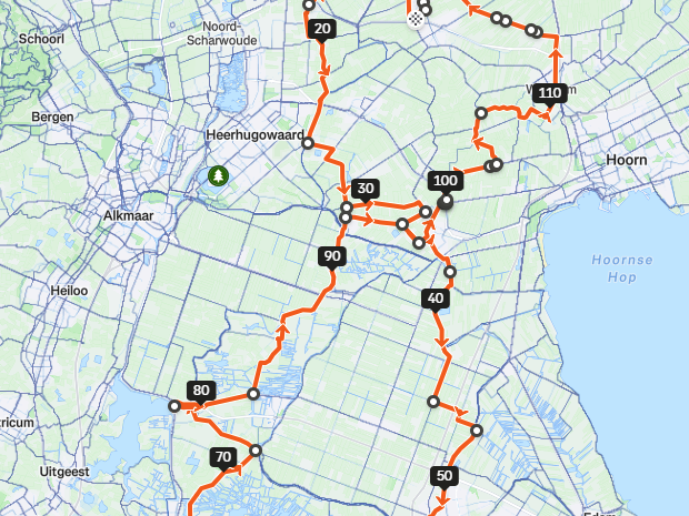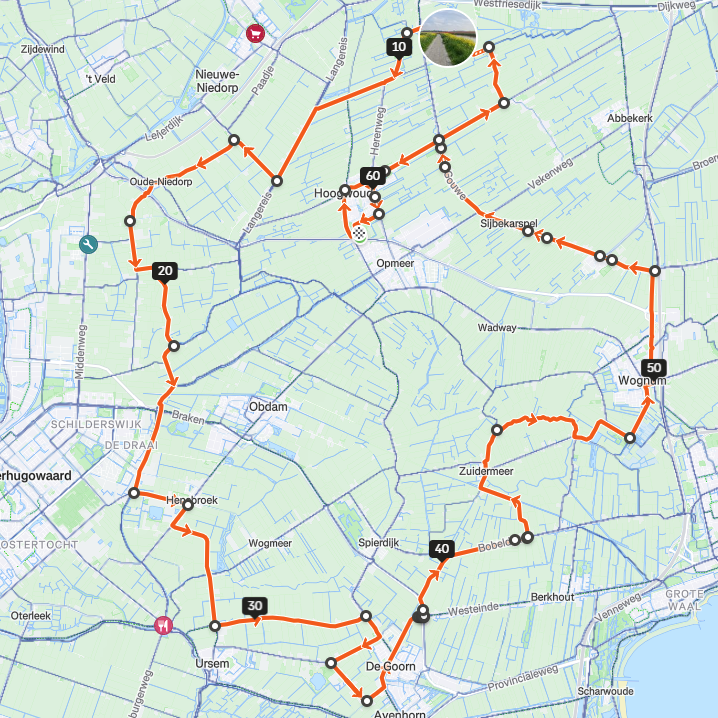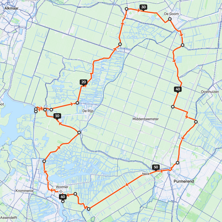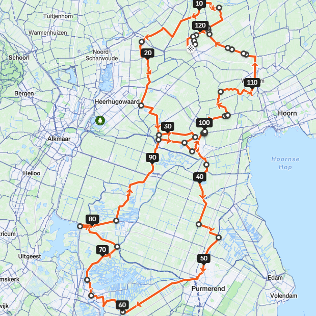 De 7-Dorpentocht kent twee lussen van 60 km. Het is mogelijk om zowel in Hoogwoud als in Wormer te starten. Beide lussen komen samen bij een verzorgingspost in Avenhorn. Je kunt dus kiezen voor een lus van 60 km of de twee lussen combineren en 120 km fietsen.
