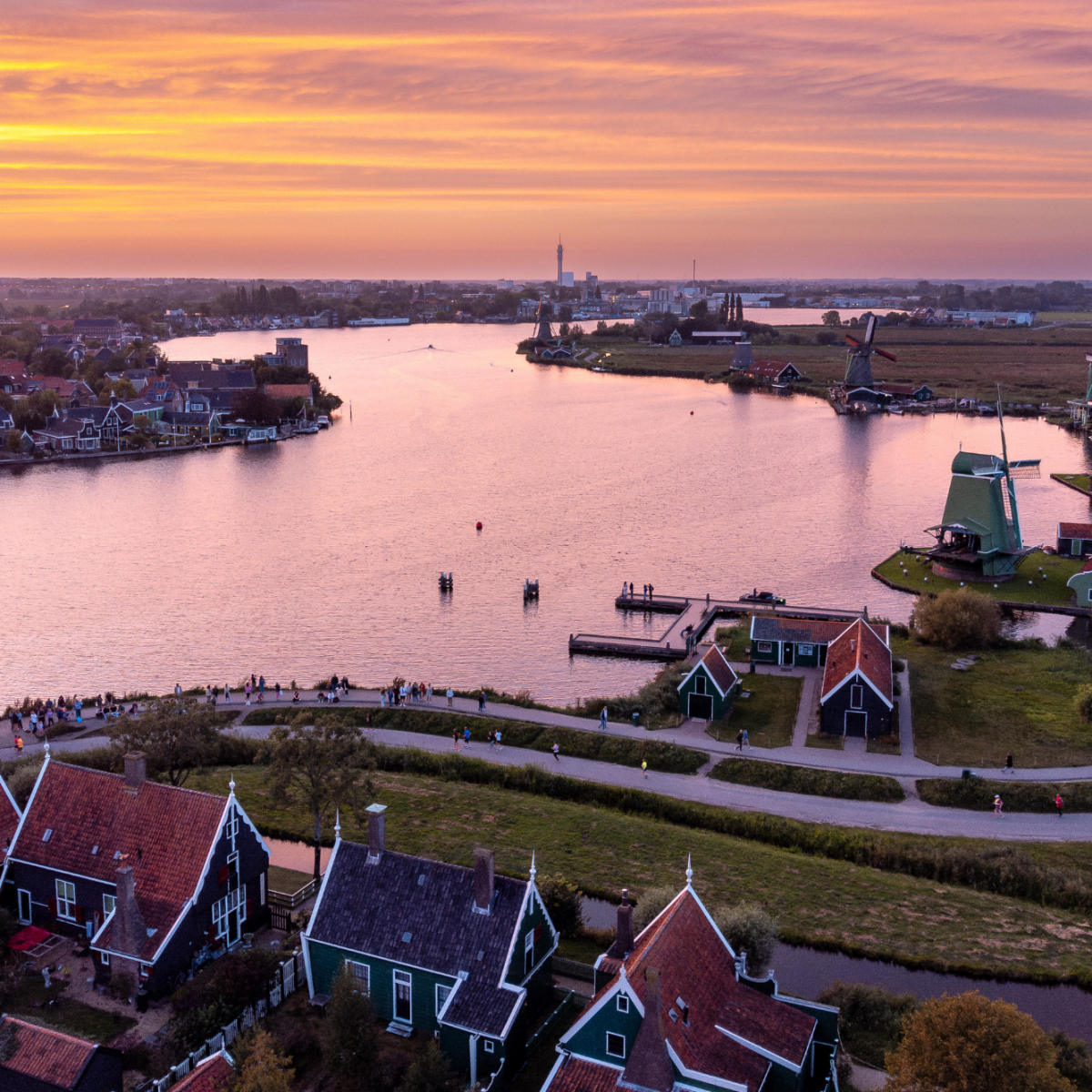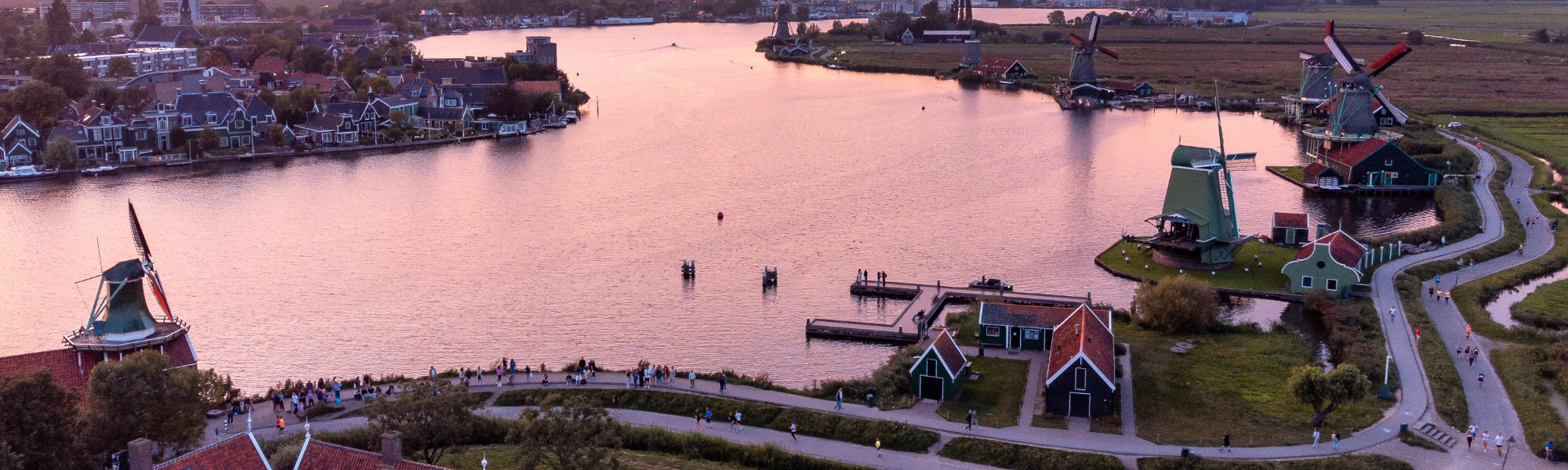 We wandelen rondom de Zaanse Schans. Een uniek erfgoeddorp in Nederland, vol monumentale huizen, molens, pakhuizen en ambacht werkplaatsen. De Zaanse Schans is een vrij toegankelijk woon-werkgebied sinds 1850. Ondanks dat er elke dag bezoekers van over de hele wereld het erfgoed bezoeken is het goed om te weten dat er nog steeds mensen wonen.