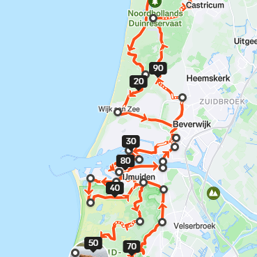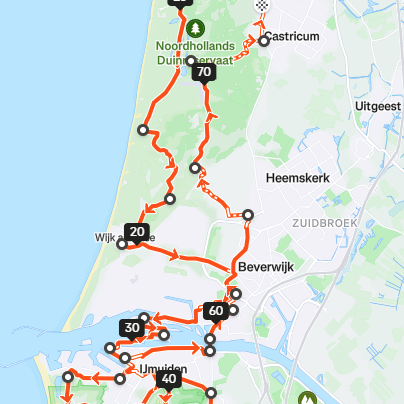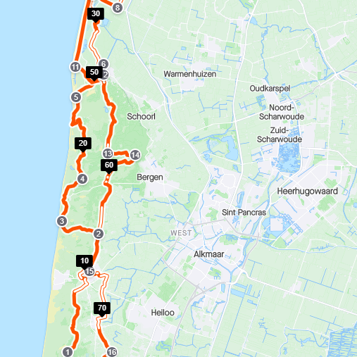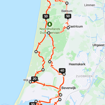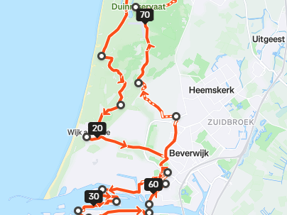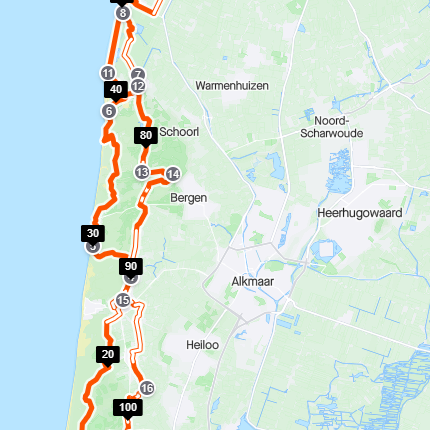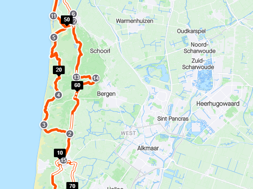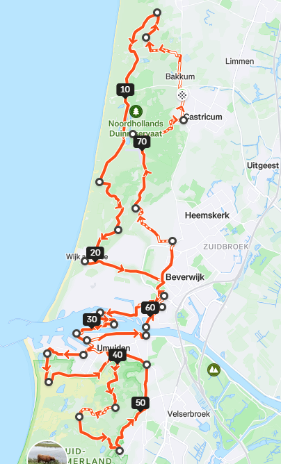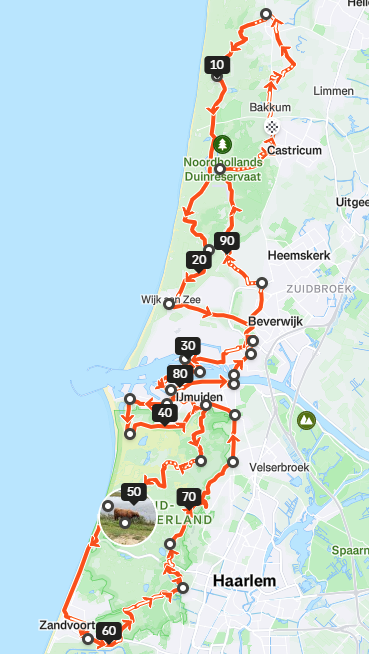 De routes zijn geheel uitgepijld en deelnemers ontvangen een GPX-bestand. Alle afstanden gaan na de start richting het Noorden, met uitzondering van de 100 km route. Deze route gaat eerst naar Wijk aan Zee. De 50 km route doet Groet aan als verste punt. De 75 km en 100 km routes doen Sint Maartenszee als verste punt aan. De routes zijn voor het grootste deel autovrij, je fietst door het prachtige duingebied.