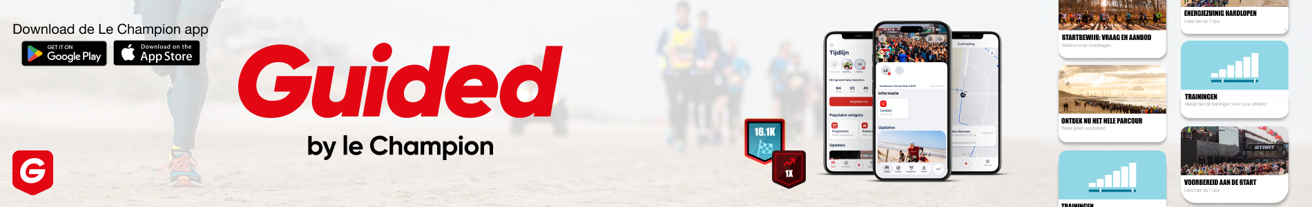 Guided is de persoonlijke gids waarmee Le Champion deelnemers helpt om zich voor te bereiden op een evenement. De naam Guided is ook gebaseerd op het woord gids. We zijn gestart met een gids voor alle hardloopevenementen.