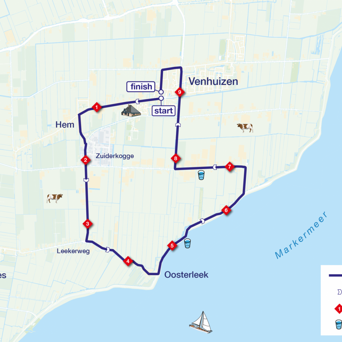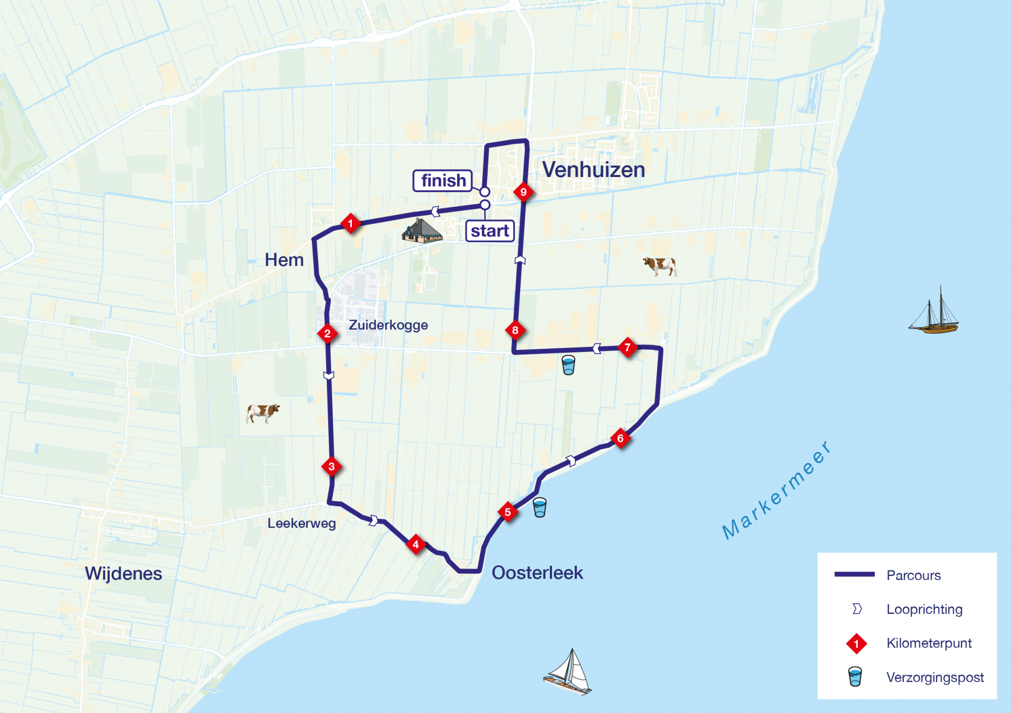 ParkerenHet centrum van Venhuizen is rondom de start en finish afgesloten voor verkeer. Parkeren kan op het grote parkeerterrein bij Moso International B.V. aan de Markerwaardweg 8, 1606 AS Venhuizen. Vervolgens is het nog 10 minuten wandelen naar de start bij Café de Roode Leeuw (Westeinde 1, 1606 CZ Venhuizen)