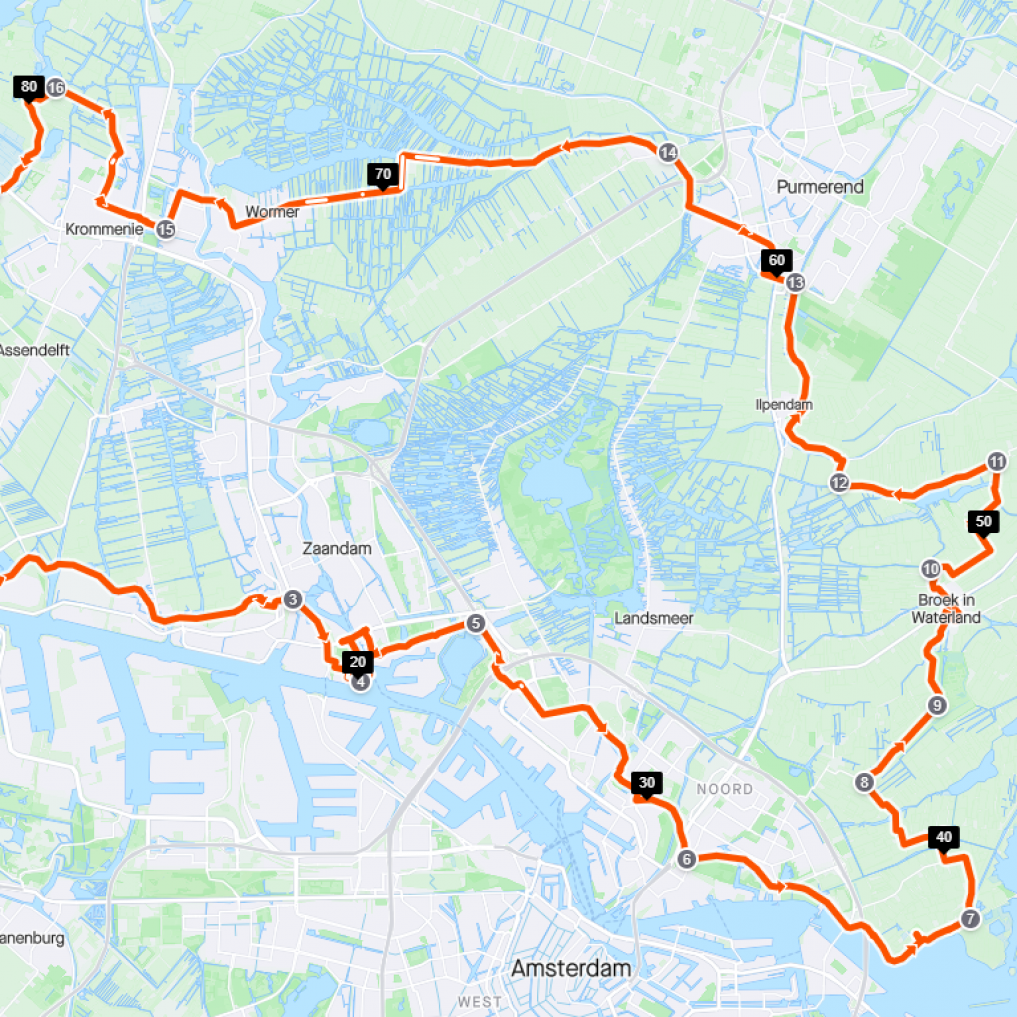 Bij de startlocatie is geen parkeergelegenheid bij Fort aan den Ham. Parkeren is mogelijk op het NS Station Krommenie – Assendelft. Vanaf hier is het 1,5 km fietsen naar de start. Volg het fietspad langs de N8 in westelijke richting.